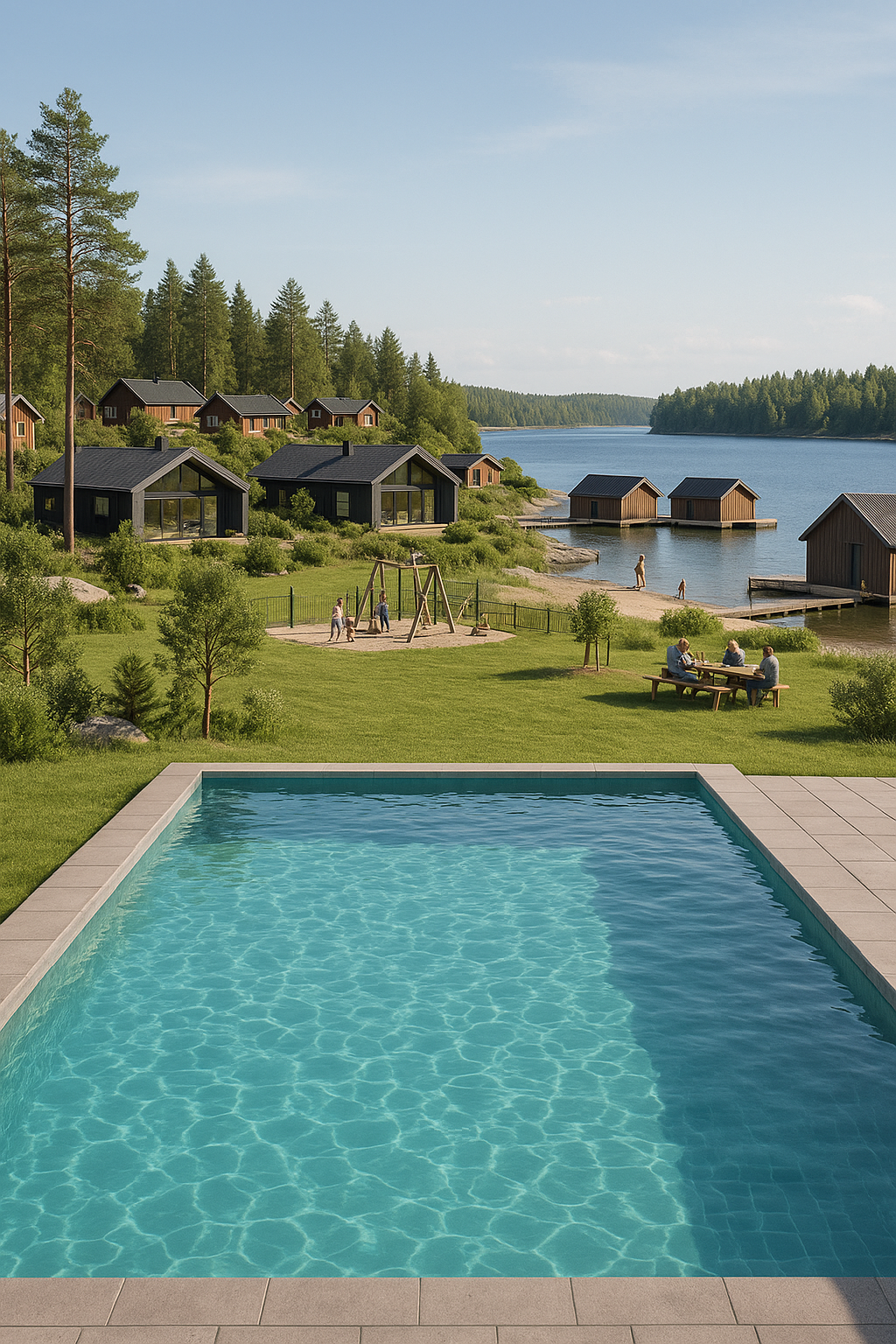 Möjlighet att bygga båthus, bastu, padelbana, restaurang, co-working m.m.